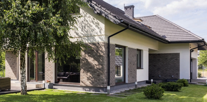 Cokół może być cofnięty, wysunięty lub zlicowany ze ścianą. Gdy jest on cofnięty o 2-3 cm od elewacji, tworzy się kapinos. Krople wody odrywają się od jego powierzchni i zarówno ściana, jak i cokół nie są narażone na działanie wilgoci, dzięki czemu zazwyczaj przez lata nie wymagają remontu. Cokół tworzący ze ścianą jednolitą płaszczyznę wygląda często nie najlepiej – brak odcięcia w pasie przygruntowym sprawia bowiem, że budynek robi wrażenie zbyt głęboko osadzonego w ziemi. Tak skomponowany detal jest często elementem bardzo nowoczesnych domów. To rozwiązanie sprawdzi się, gdy warstwa elewacyjna cokołu jest dopasowana do budowy ściany. Na przykład dwuwarstwowa wymaga wyrobów o wyjątkowej odporności na wilgoć oraz uszkodzenia mechaniczne, np. klinkieru czy elementów kamiennych lub betonowych. Jeśli więc zdecydowaliśmy się na budowę murów w technologii dwuwarstwowej i wykończenie ich tynkiem, to warto jednak osłonić strefę przyziemia bardziej odpornym materiałem. Inaczej nieosłonięta ściana w przyziemiu może szybko ulec zniszczeniu.